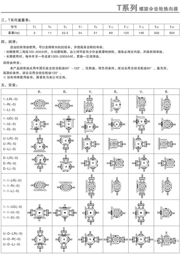 比如: T6-1:1-1-L 與  T6-1:1-1-R ,了解一點英語的記這個就很方便了: Left,左; Right:右。 表示輸出軸一個在左一個在右。 如果是 T6-1:1-1-LR  , 表示輸出雙軸,有左有右,即雙軸輸出。   如果后面加了-O, 比如 T6-1:1-1-L-O,  這是用來與 T6-1:1-1-L 區分的。仔細看這兩個圖形,你會發現,他們的外形一樣,只是內部的傘齒輪一個在左一個在右,這樣配置的目的就是使輸出軸的旋轉反個方向。